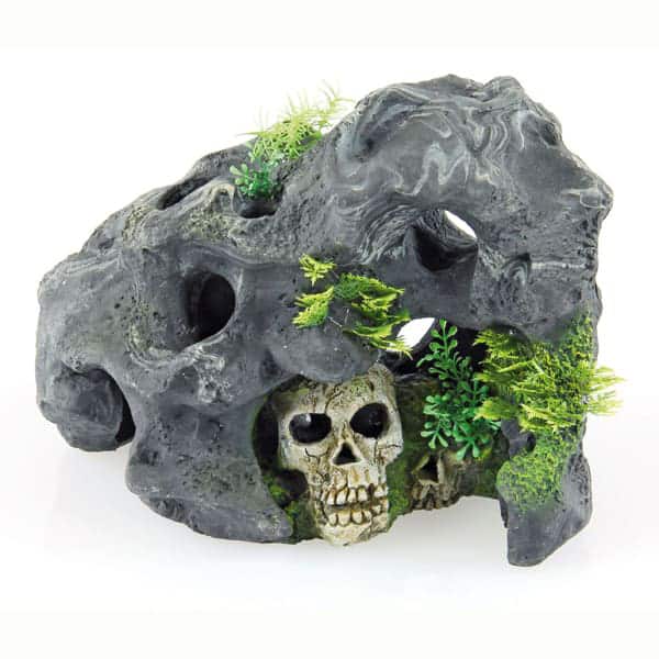 Totenkopf mit Felsen Deko für Terrarien und Aquarien